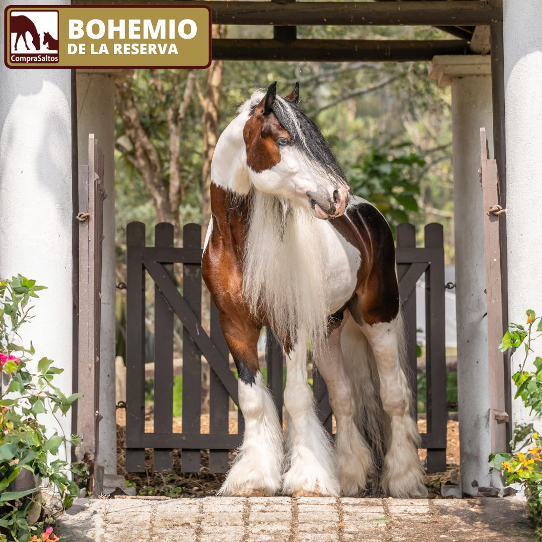 Llega a CompraSaltos BOHEMIO DE LA RESERVA, caballo reproductor con una de las razas más exquisitas dentro del mundo equino la Gipsy, ya que los ejemplares de este linaje, se caracterizan por ser caballos compactos, sumamente fuertes y resistentes, pero con un carácter dócil y muy noble ideal para los niños.