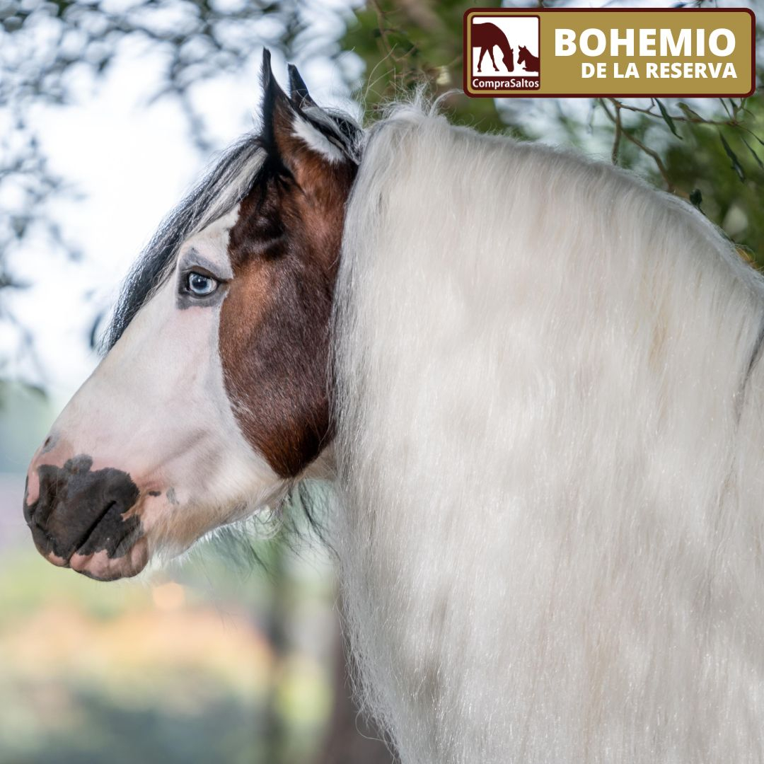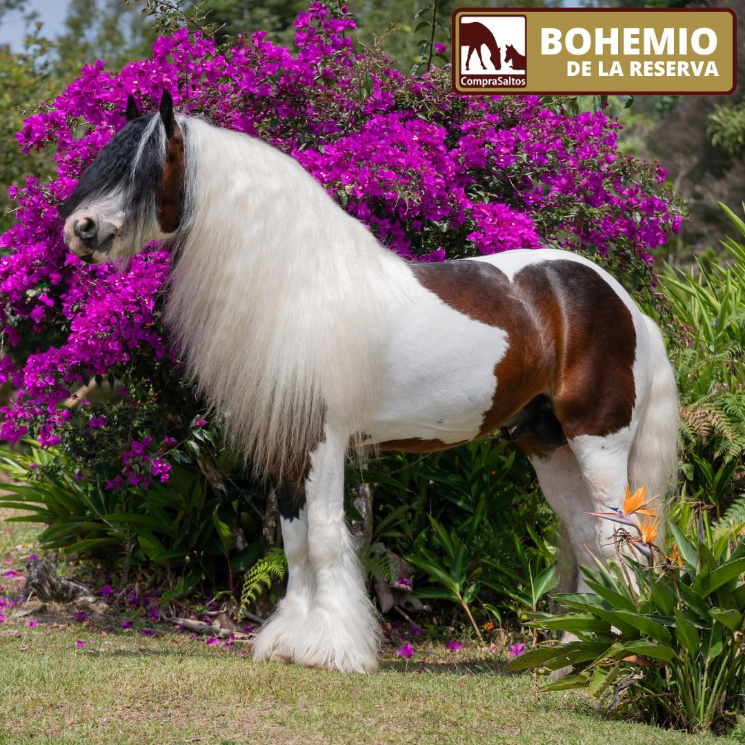 BOHEMIO DE LA RESERVA, es el único reproductor tricolor con ojo azul cristal en Colombia, su belleza, vistosidad y nobleza lo hacen perfecto para cruzar con otras razas. También posee registro en la GVHS (Gypsy Vanner Horse Society).